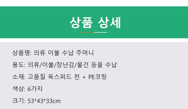 다양한 색상의 의류 이불 수납 주머니